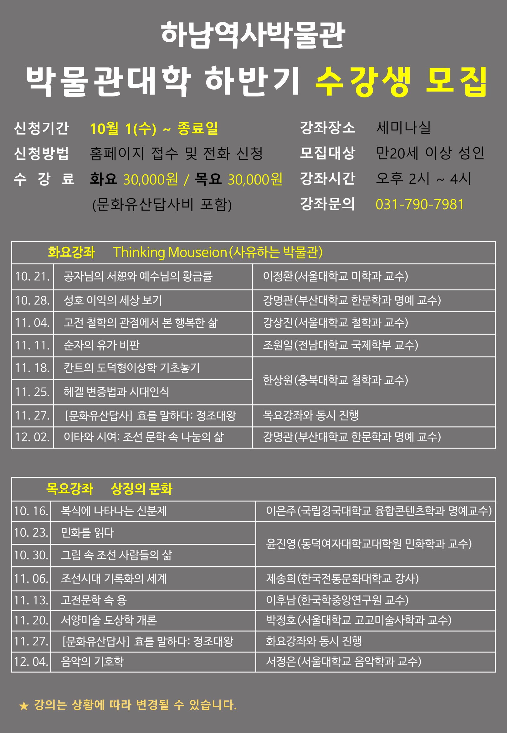 [하남문화재단] 하남역사박물관 박물관대학 하반기 수강생 모집