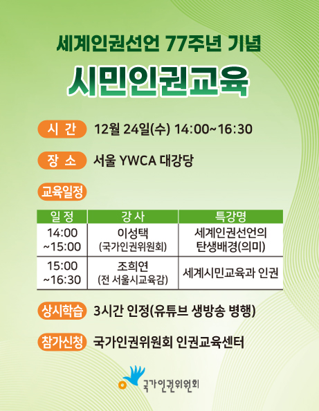 [국가인권위원회] 세계인권선언 77주년 인권교육 안내
