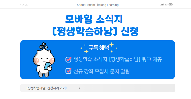 모바일 소식지 [평생학습하남] 구독 신청하세요~!