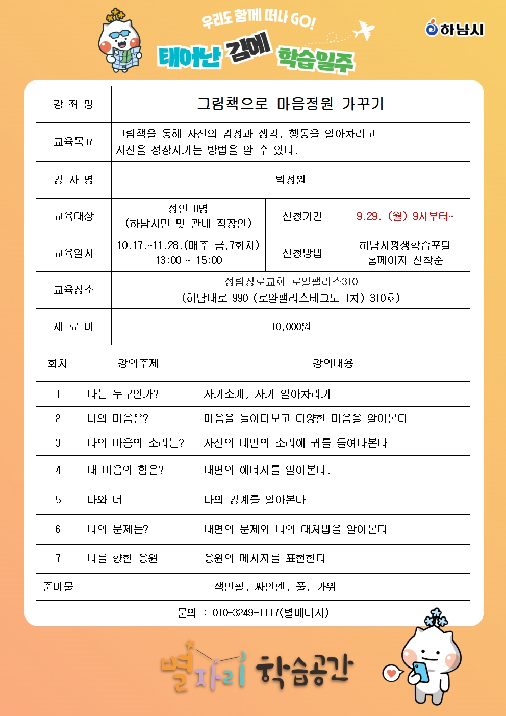 성인(하남시민 및 관내 직장인) | 교육요일 |