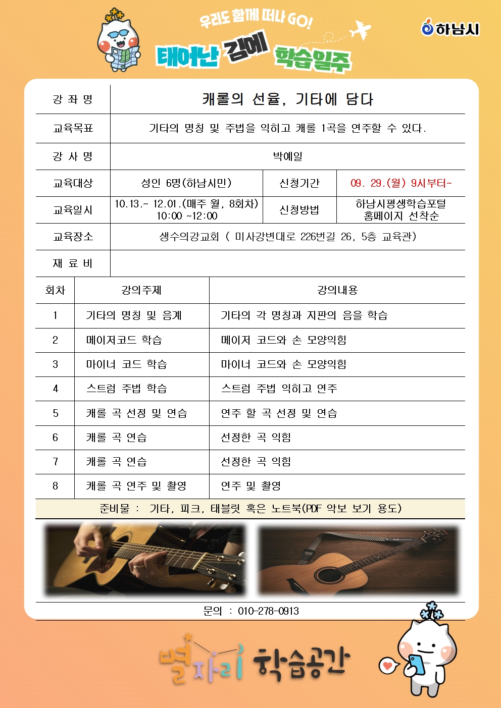 ※ 1인2개강좌수강 신청 가능하며, 신청강좌가2개 초과시 임의로 취소 될 수 있습니다. - 중도포기,무단결석 시 자동 취소되며,이후 수강신청이 제한될 수 있습니다. ※ 수업 관련 내용은 담당매니저가 안내합니다. ※ 수업진행은카카오톡 오픈톡방이 개설되어 안내가 진행됩니다. ※ 주차는 유료로 이용가능합니다. |
