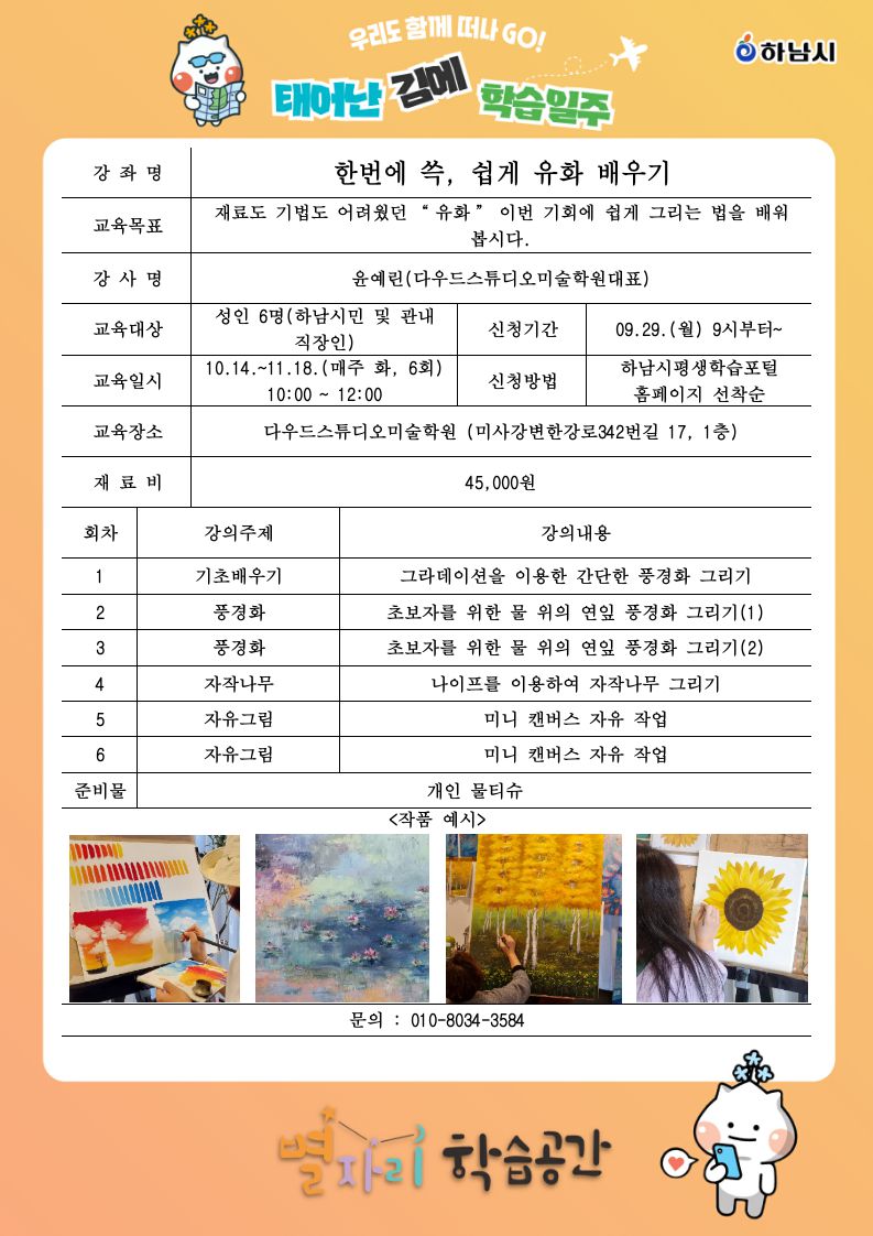 성인(하남시민 및 관내 직장인) | 교육요일 |