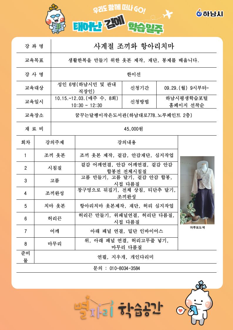성인(하남시민 및 관내 직장인) | 교육요일 |