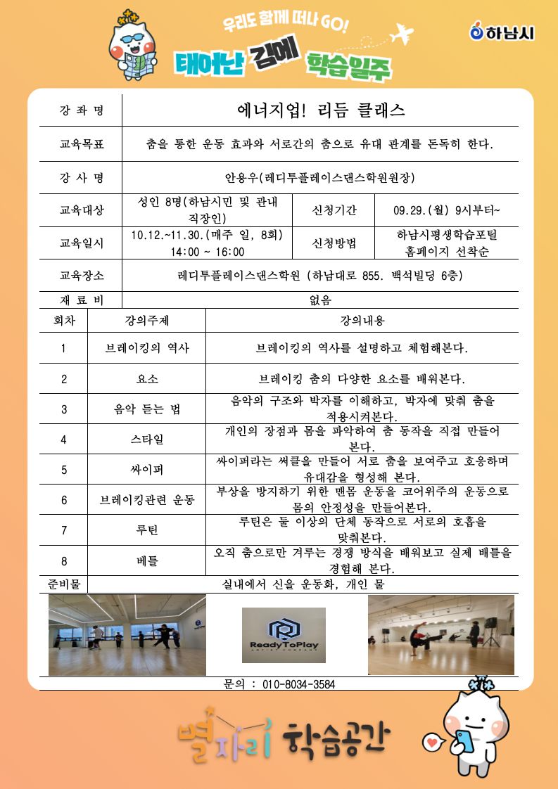 성인(하남시민 및 관내 직장인) | 교육요일 |