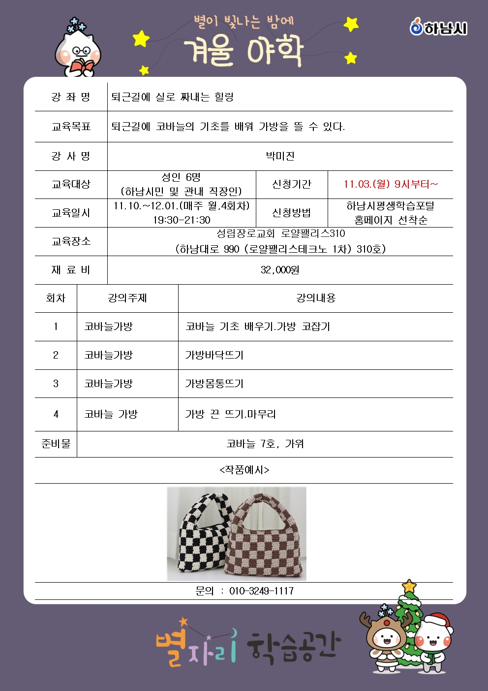성인(하남시민 및 관내 직장인) | 교육요일 |